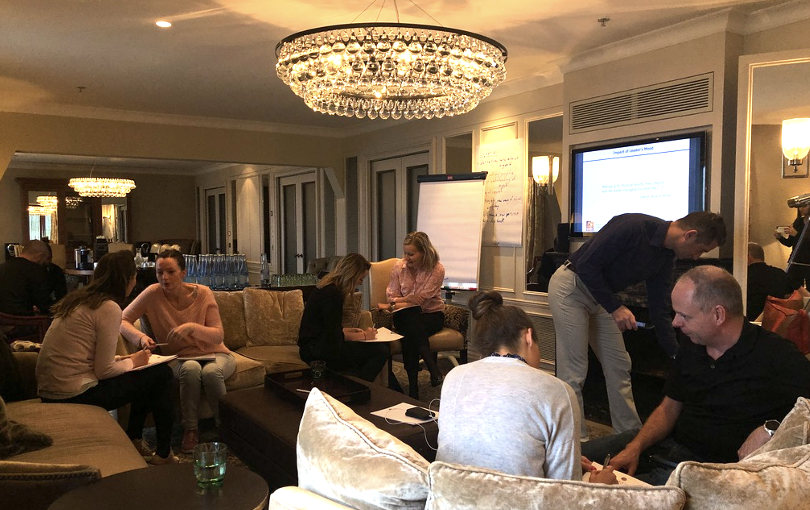 - Follow-up check-in of cohort with sponsors and executive coach to reflect on learnings,